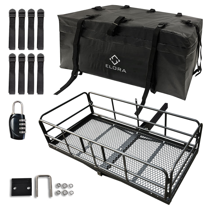 Elora 500Lbs Folding Hitch-Mount Cargo Carrier Rack Heavy Duty Luggage Basket