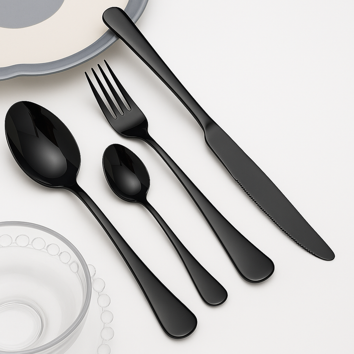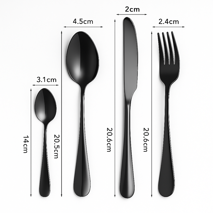 Cutlery Set Black 16 pcs Stainless Steel Knife Fork Spoon Stylish Teaspoon Kitchen