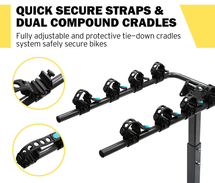 Elora 4 Bicycle Carrier Hitch Bike Rack Foldable Mount Vehicle Towbar Car Rear