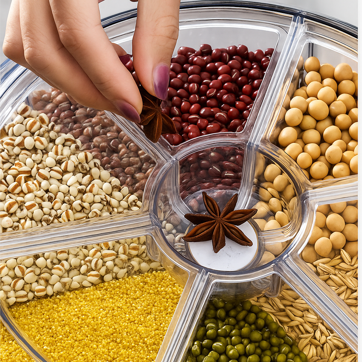 - Versatile with 6 compartments: Internal partitions to store different dry foods like cereal, nuts, seeds, rice, grains, beans, flour, pet food, snacks and more