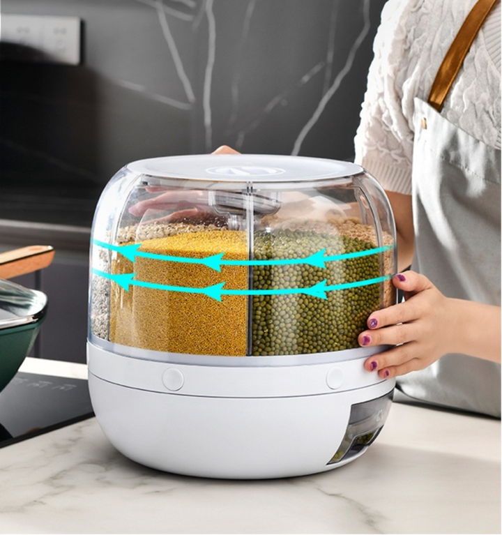 Salesbay 6 in 1 Rotating 360° Dry Food Dispenser Grain Rice Storage Container Cereal Box