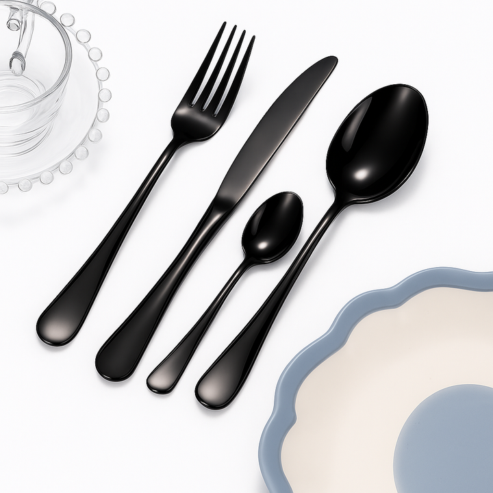 Cutlery Set Black 60 pcs Stainless Steel Knife Fork Spoon Stylish Teaspoon Kitchen