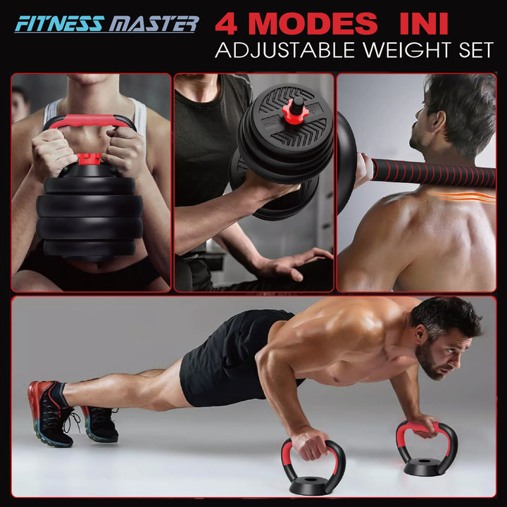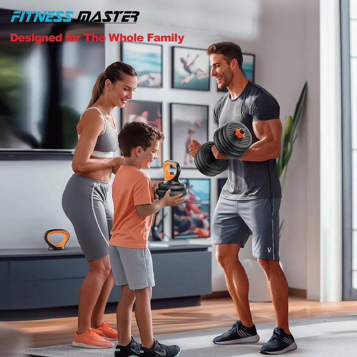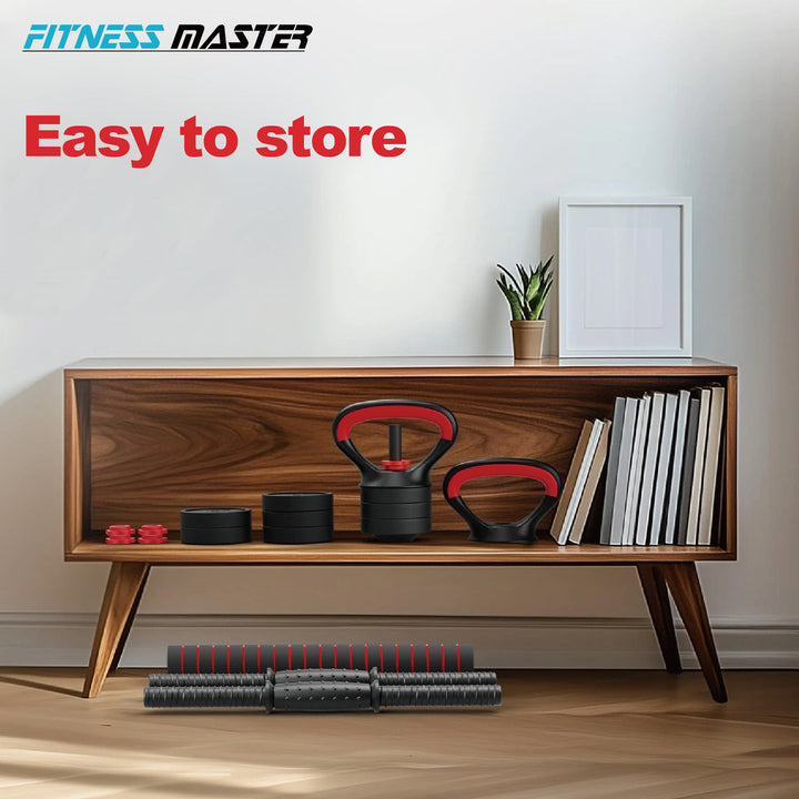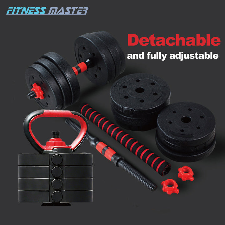 Fitness Master 30KG 7-in-1 Adjustable Dumbbell Barbell Kettlebell Set Home Gym