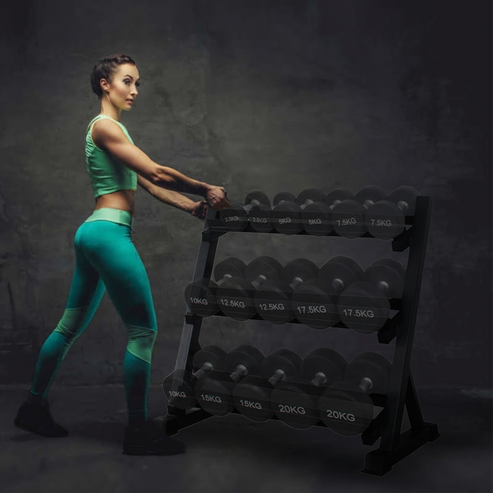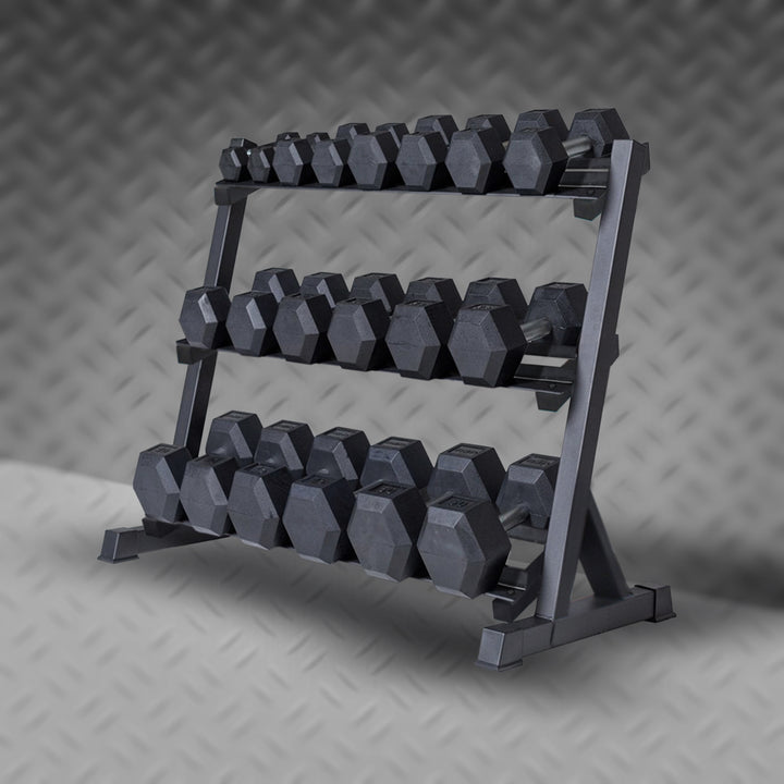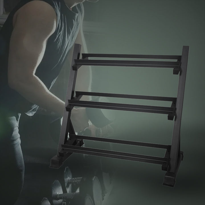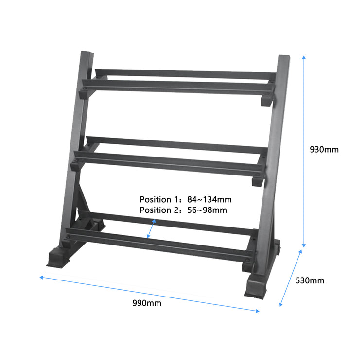 3-Tier Storage: Neatly stores dumbbells and barbells