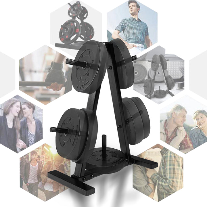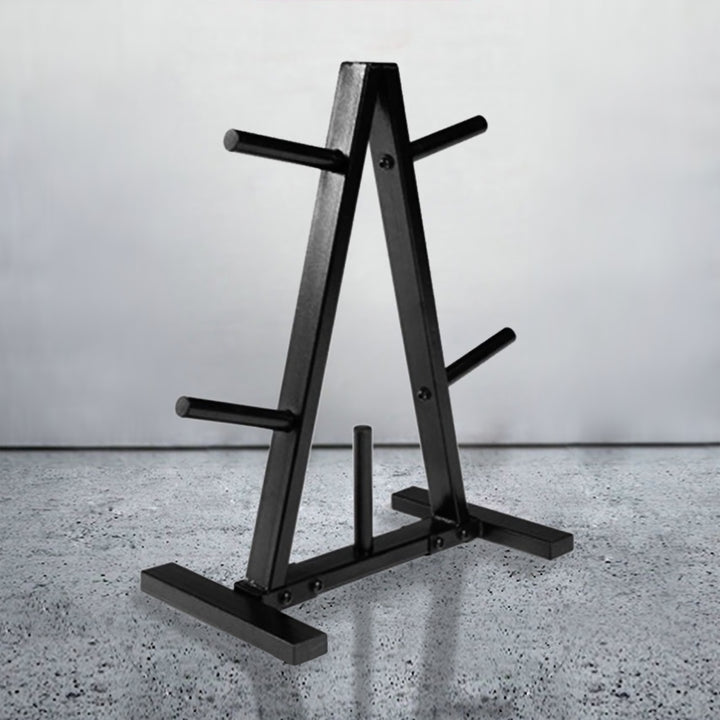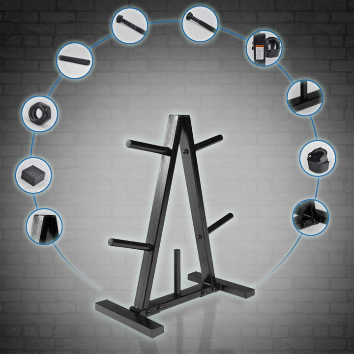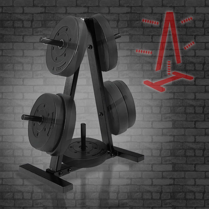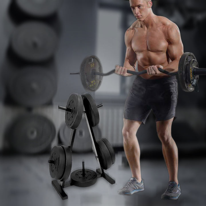 Keep your home gym neat and organized with this heavy-duty storage rack. Designed to hold standard and Olympic plates as well as up to two barbells, it reduces floor clutter while providing easy access to your equipment.