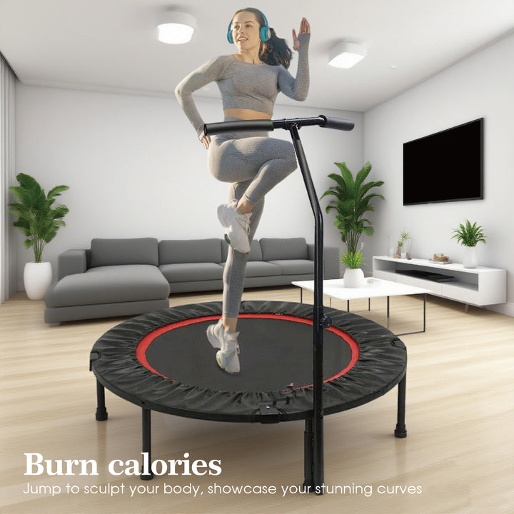 FITNESSMASTER 40" Mini Trampoline Handrail Folding Exercise Cardio Rebound 150KG