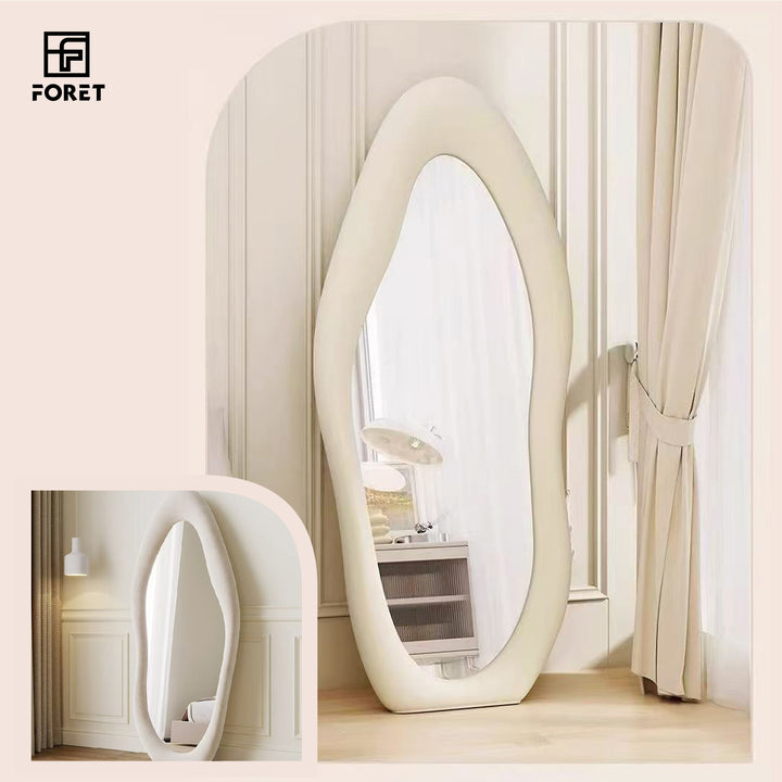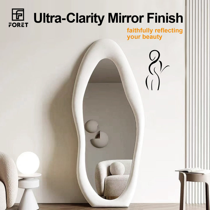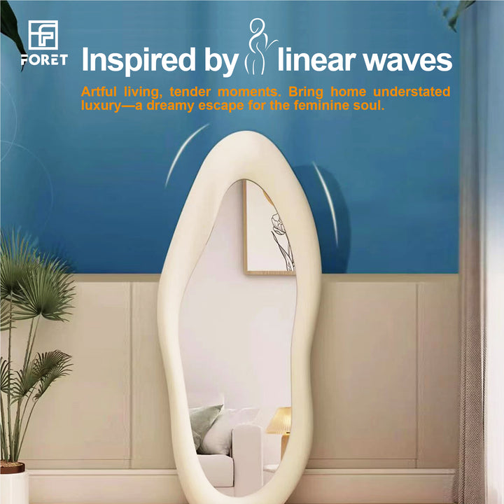 - Unique Irregular Design: Elegant curvy silhouette adds artistic flair—doubles as décor and functional full-body mirror.