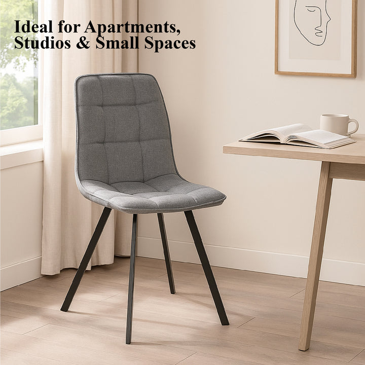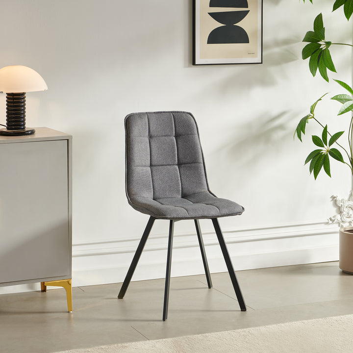 Upgrade your dining space with this modern fabric dining chair that perfectly balances style, comfort, and durability. Featuring a soft upholstered seat and backrest with grid-stitched design, it offers ergonomic support while adding a sleek, contemporary touch to your dining room, kitchen, or café.