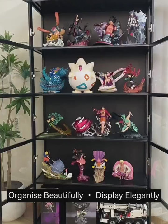 - Wide Double-Door Access: Easy to reach and rearrange your figures, books and décor.