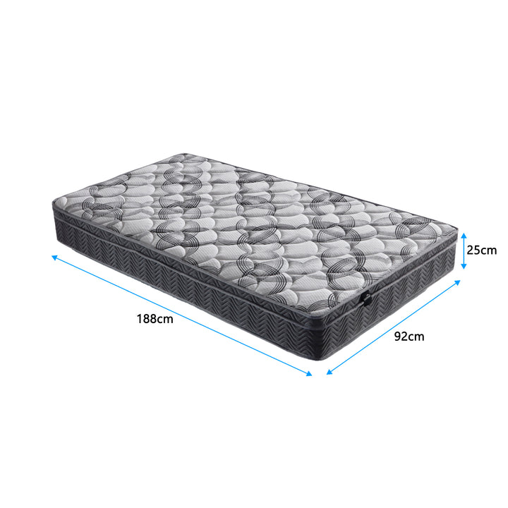 Foret Single Bed Mattress 5 Zone Euro Top Bedding Foam Medium 25cm Firm