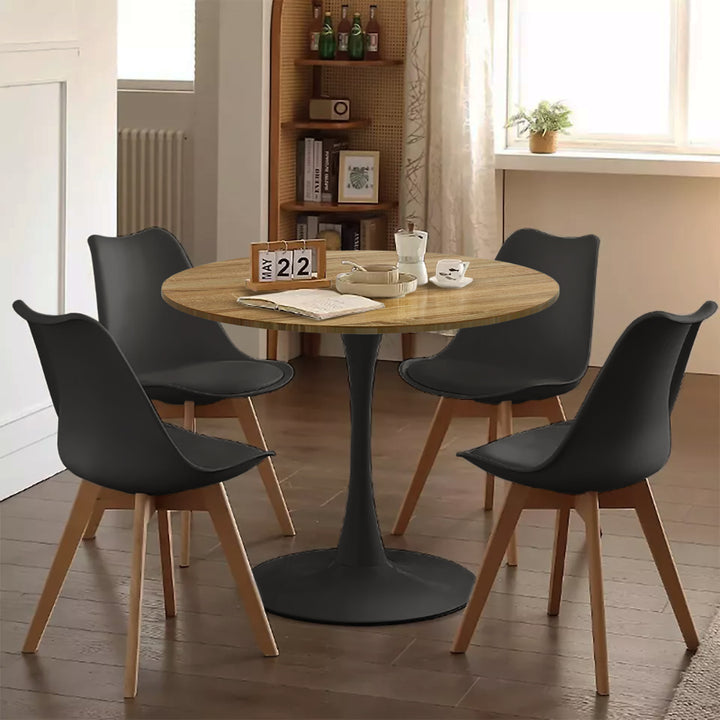 FORET Modern Round Dining Table Tulip Coffee table 80cm Wooden Top Metal Legs BK