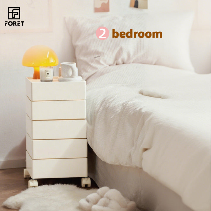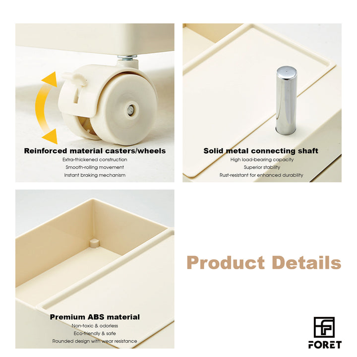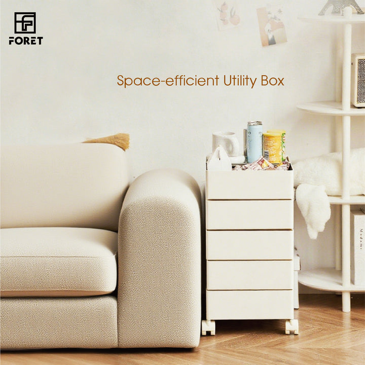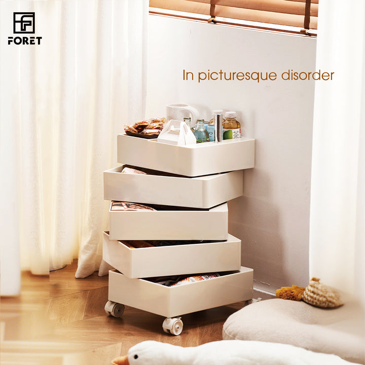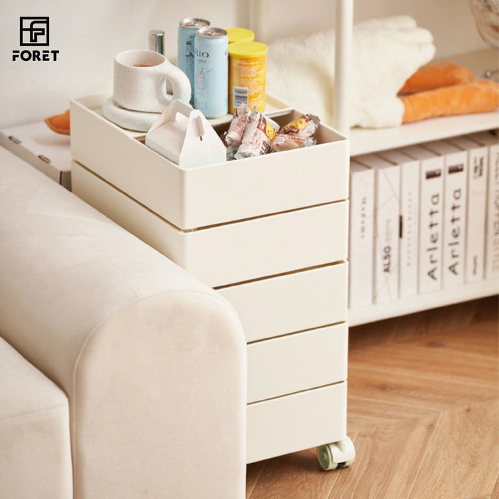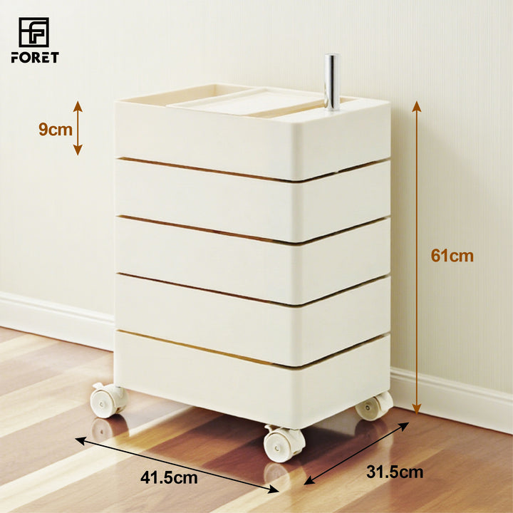 FORET 5 Tier Utility Rolling Storage Cart Cabinet Side-Pull Drawers Wheels Cream