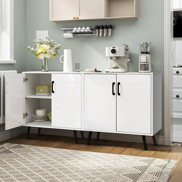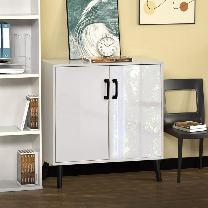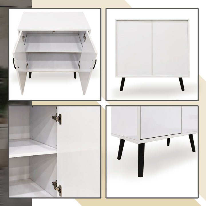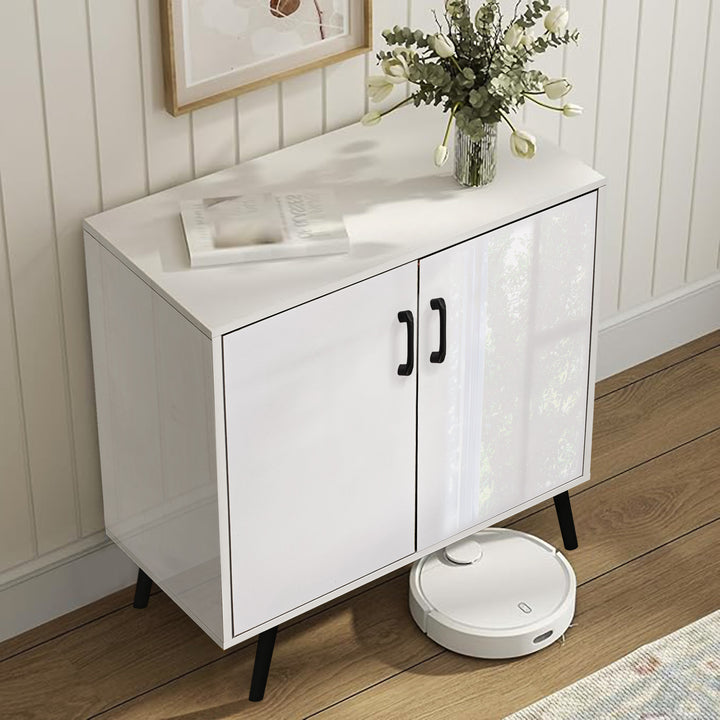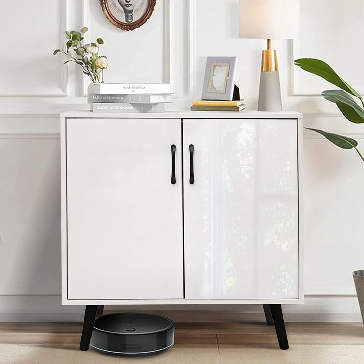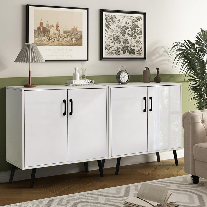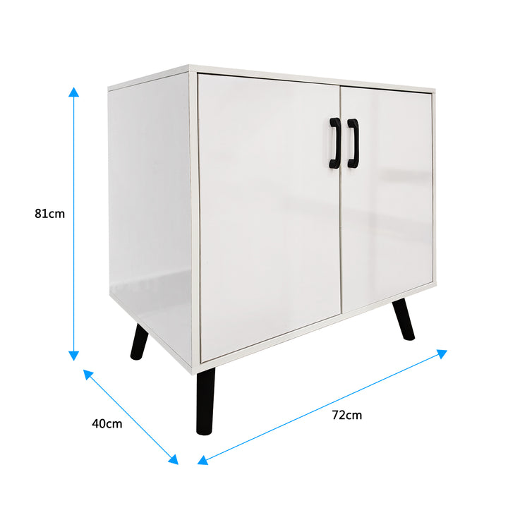 Elevate your home décor with our sleek white high-gloss 2-door buffet cabinet, featuring bold black handles and legs for a striking modern contrast. Designed with Scandinavian simplicity in mind, this stylish storage piece blends minimalist elegance with practical functionality—perfect for dining rooms, living spaces, or entryways.