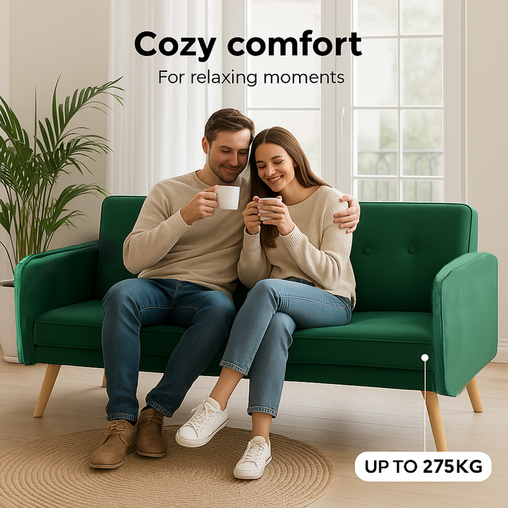 Foret Velvet 3 Seater Sofa Bed Click Clack Lounge Couch Convertible Futon Green