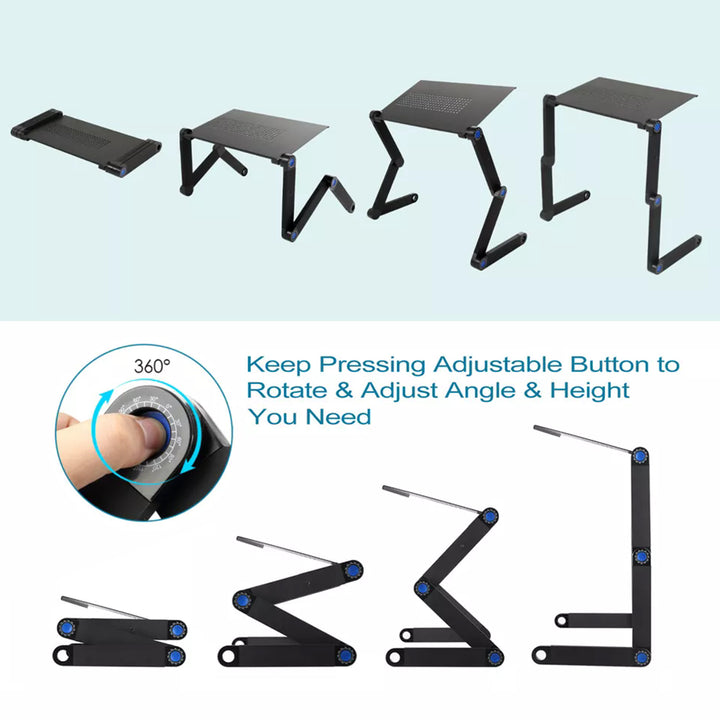 - Engineered with aerospace-grade magnesium alloy and reinforced ABS joints, this desk holds up to 15kg while remaining effortlessly portable. Fold it compactly (530-590mm) for travel or storage.