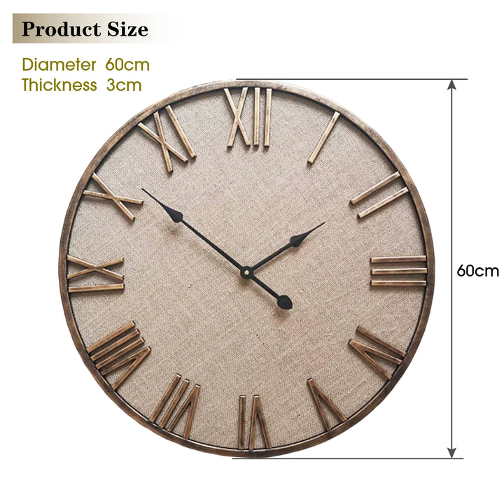 Salesbay 60cm Silent Wall Clock Linen Roman Numeral Vintage Farmhouse Home Decor