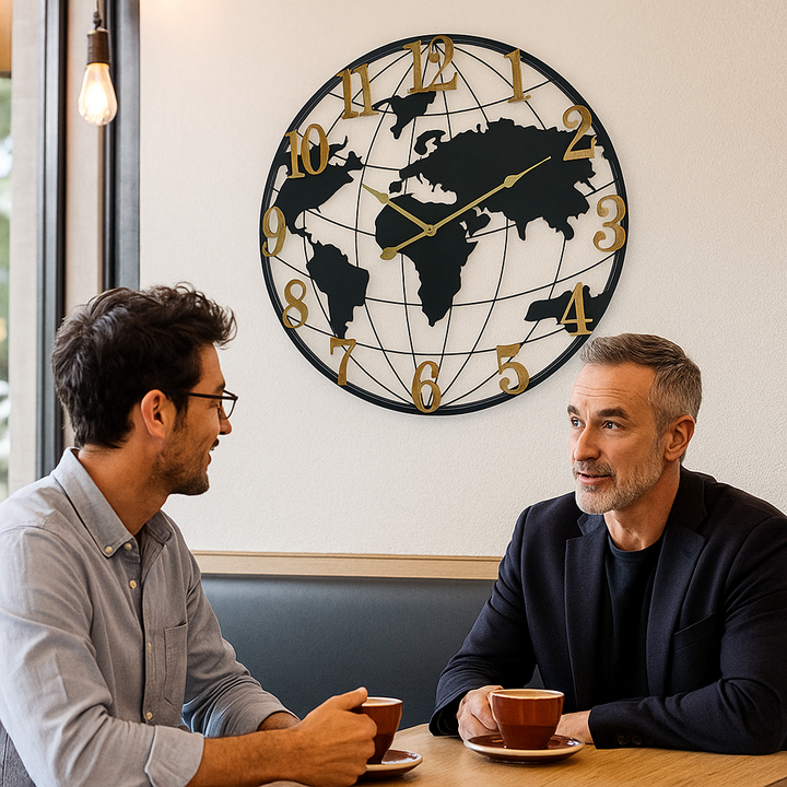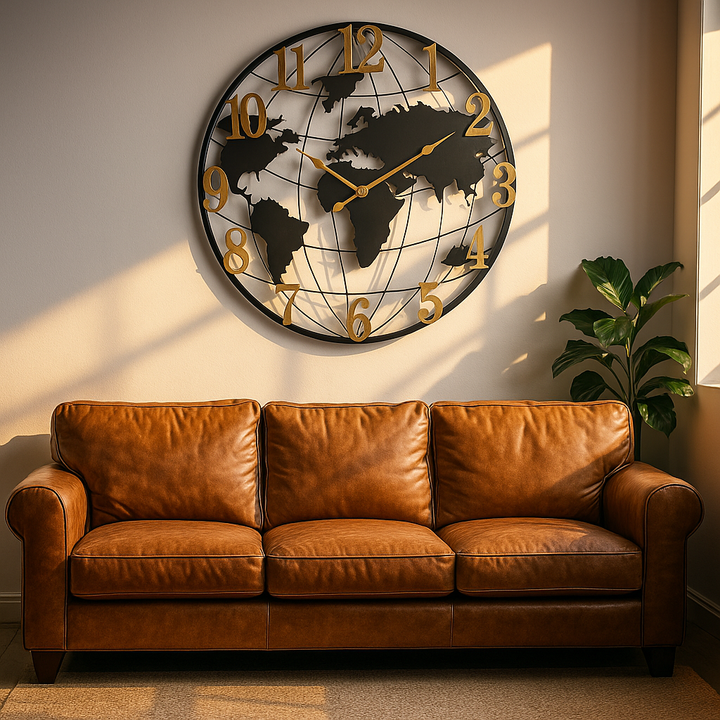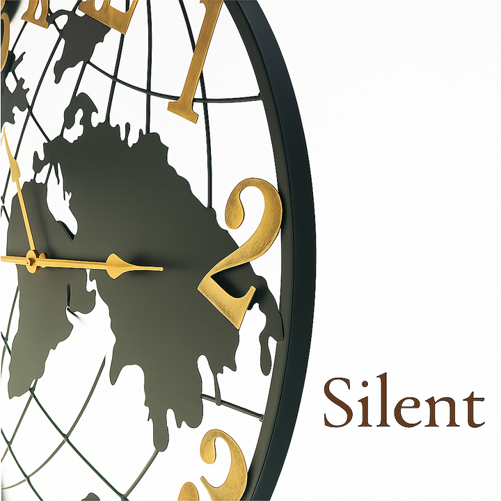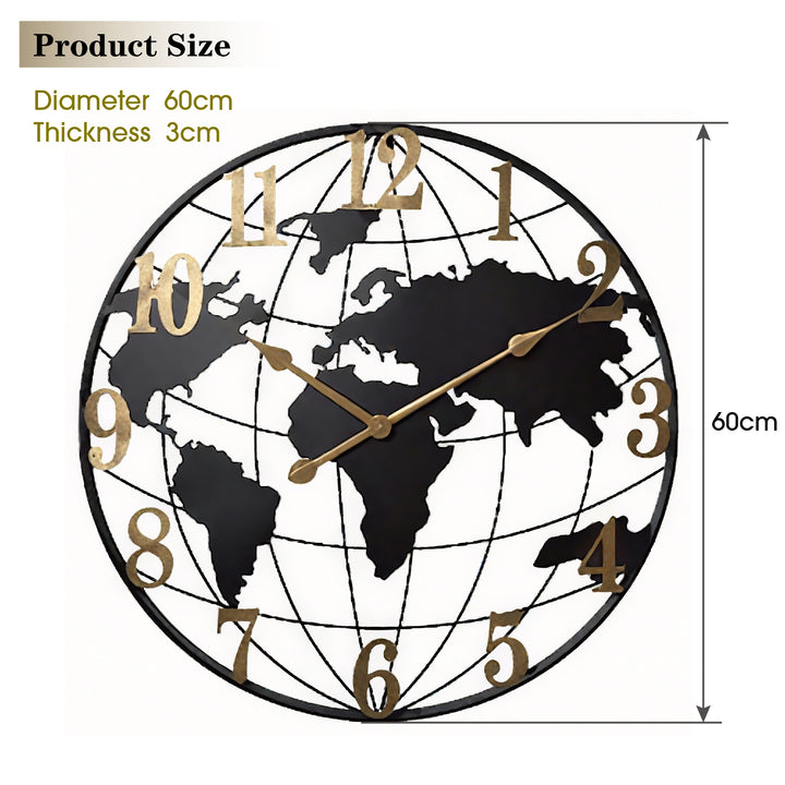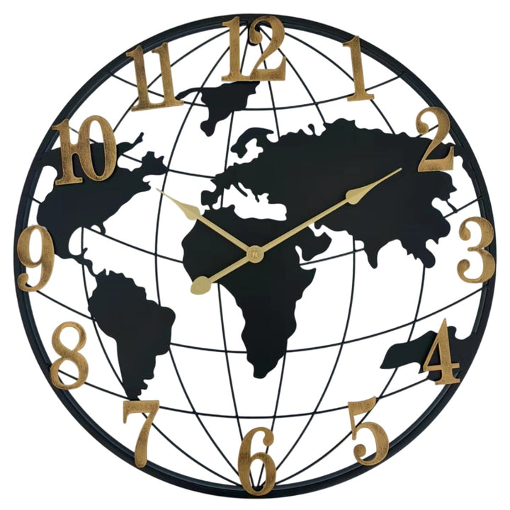 - Elegant World Map Design – Stylish cut-out globe design with black continents and golden numerals brings modern charm and global flair to your home or office.