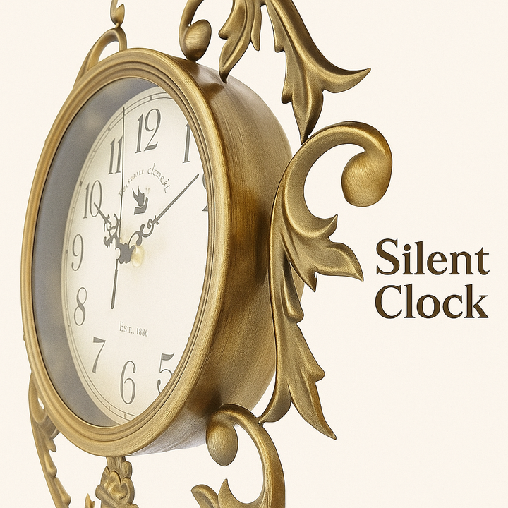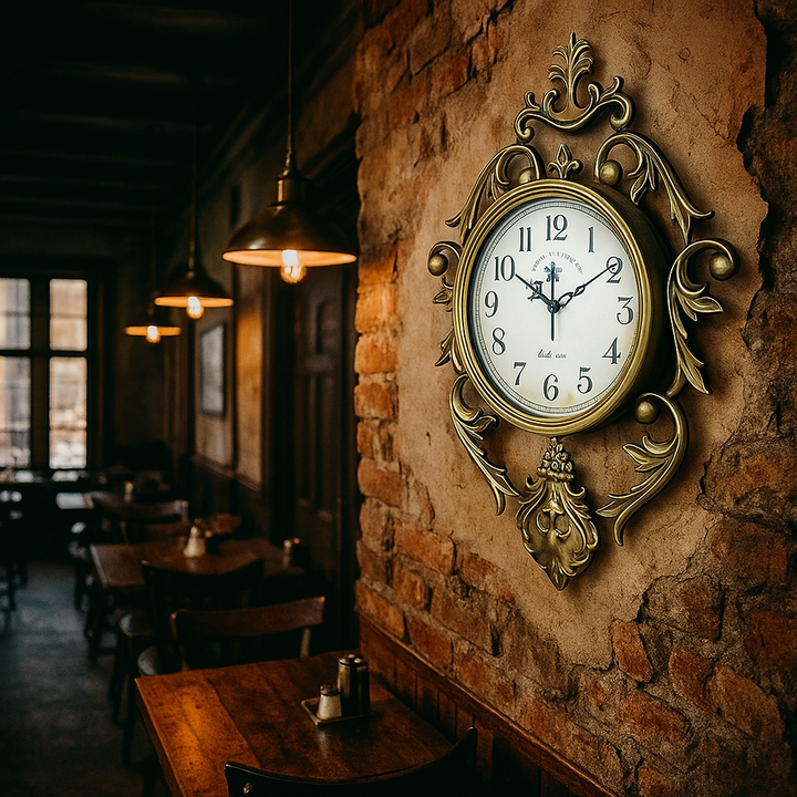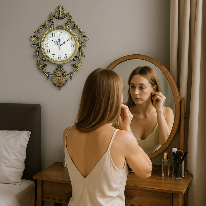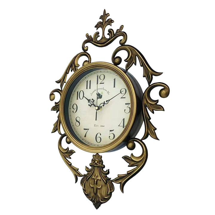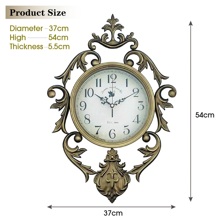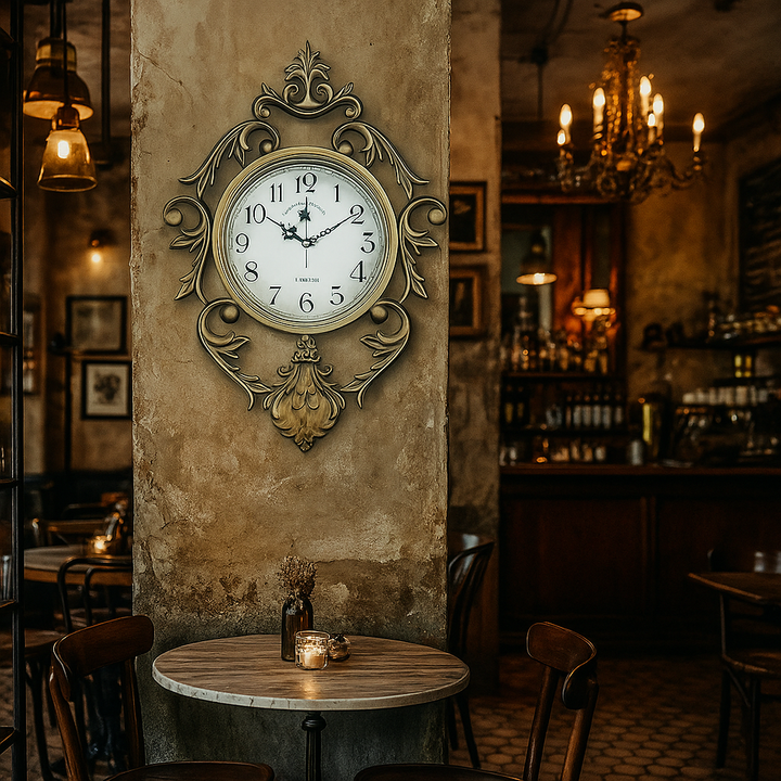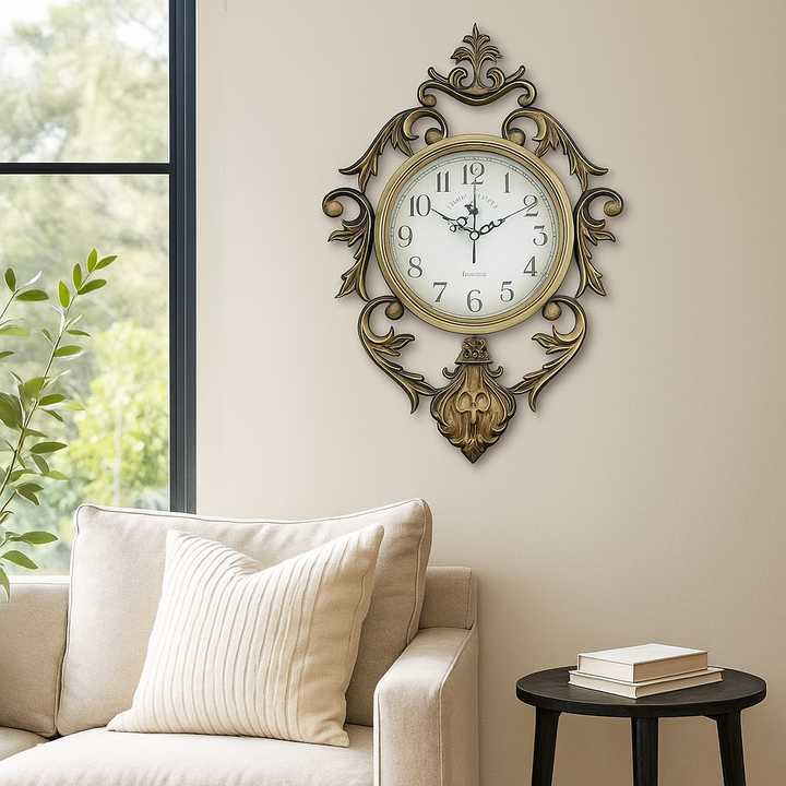 - Vintage Ornate Design – Inspired by classical European styles, this wall clock features an intricate baroque-style frame with elegant scroll details and antique bronze finish.